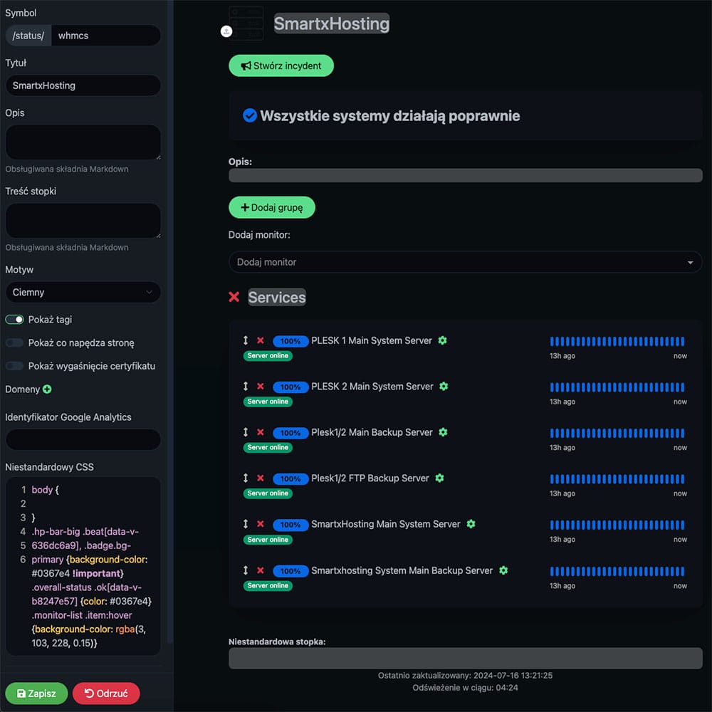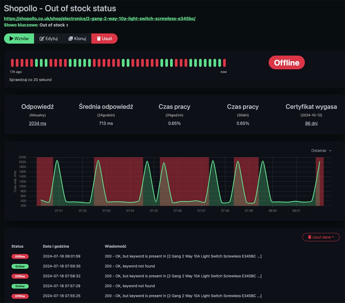 Każdy kanał można skonfigurować indywidualnie, co pozwala na precyzyjne dostosowanie warunków wysyłki alertów, np. w zależności od rodzaju wykrytego problemu czy godzin, w których powiadomienia mają być aktywne. Dzięki temu, Uptime Kuma zapewnia skuteczne i elastyczne zarządzanie powiadomieniami, co jest kluczowe dla utrzymania ciągłości działania serwisów i szybkiego reagowania na ewentualne problemy.